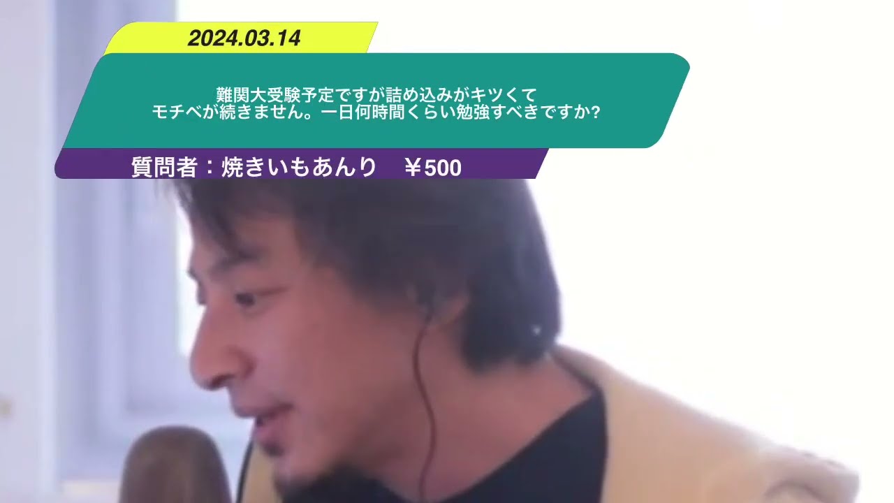 【ひろゆき】難関大受験予定ですが詰め込みがキツくてモチベが続きません。一日何時間くらい勉強すべきですか?ー ひろゆき切り抜き 20240314