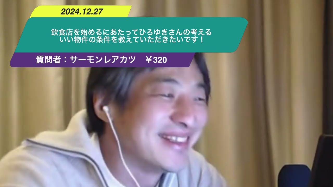 飲食店を始めるにあたってひろゆきさんの考えるいい物件の条件を教えていただきたいです!