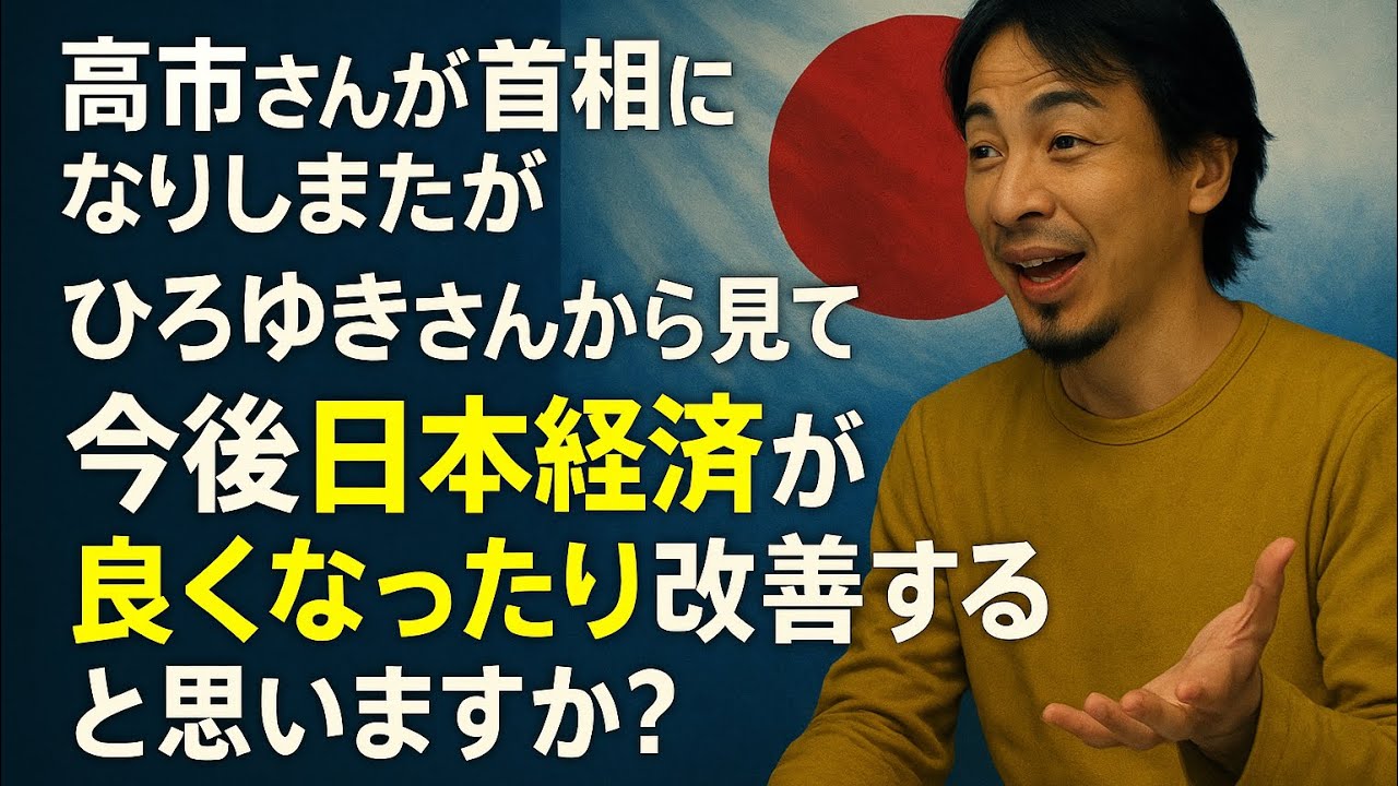 高市さんが首相になりしましたが、ひろゆきさんから見て今後日本経済が良くなったり改善すると思いますか?