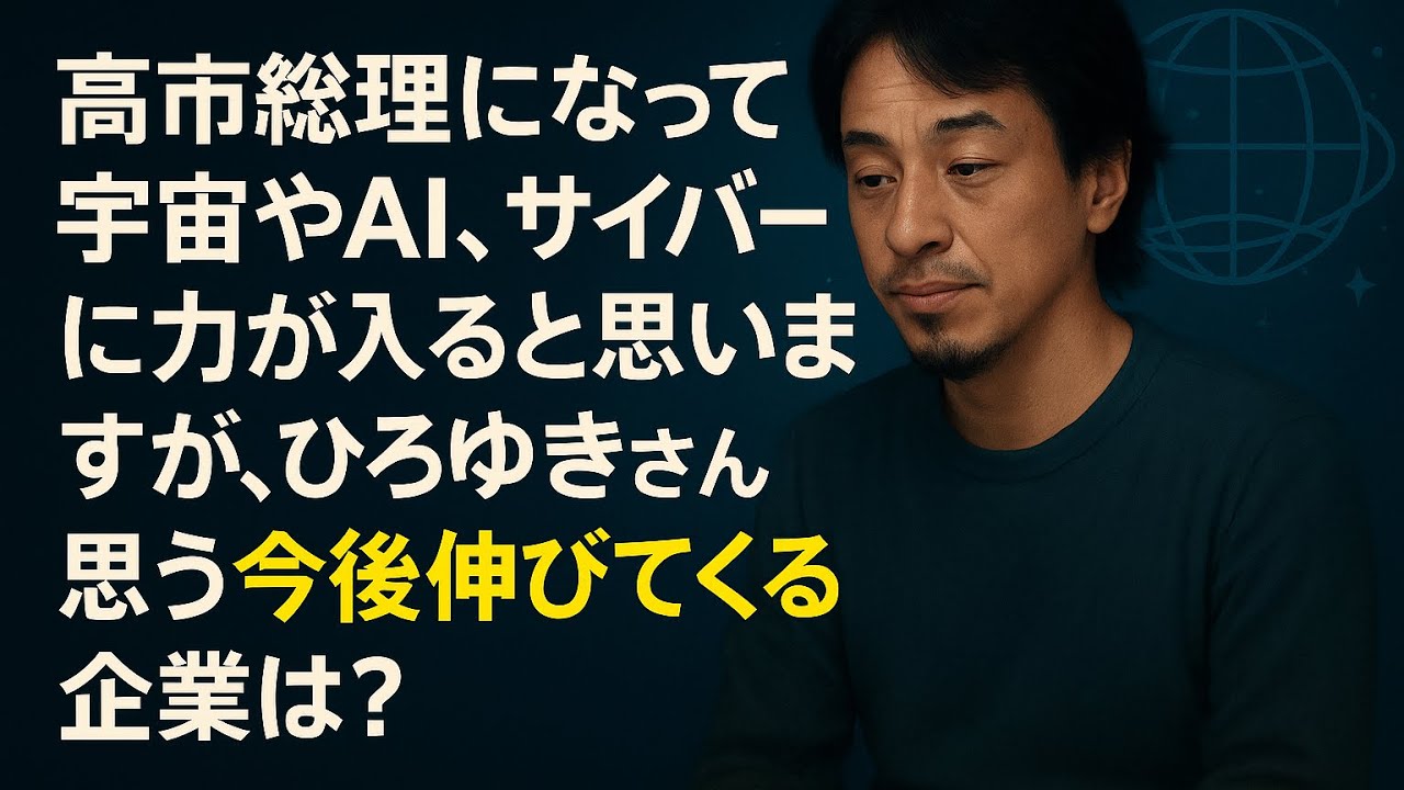高市総理になって宇宙やAI、サイバーに力が入ると思いますが、ひろゆきさんの思う今後伸びてくる企業は?