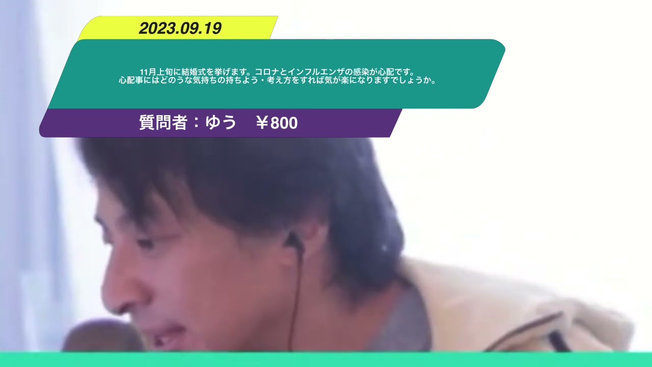 【ひろゆき】11月上旬に結婚式を挙げます。コロナとインフルエンザの感染が心配です。心配事にはどのうな気持ちの持ちよう・考え方をすれば気が楽になりますでしょうか。ー ひろゆき切り抜き 20230919