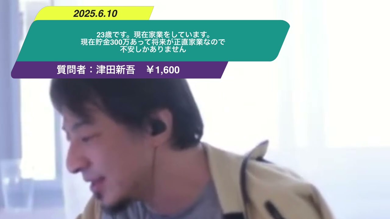 【ひろゆき】23歳です。現在家業をしています。現在貯金300万あって将来が正直家業なので不安しかありません。ー ひろゆき切り抜き 20250610