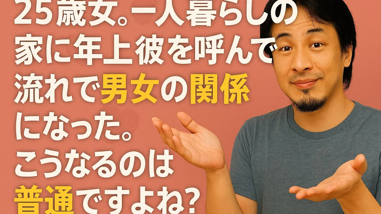 こんにちは25歳女です。わたしは最近年上の彼氏ができて一人暮らしの家に呼んだので、流れで男女の関係になったのですが、付き合った男女がこうなるのは普通ですよね?わたしの母は、彼氏を家に呼んでも付き合ってすぐにそうなることはありえないと思っているみたいなのですが、ひろゆきさんの意見なら聞き入れてくれると思うので、母が納得でき るように意見を聞かせてください。よろしくお願いします。