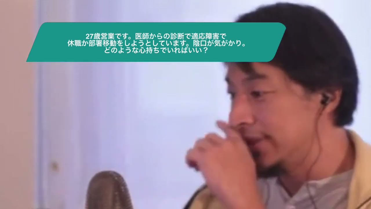 Kind: captionsLanguage: ja[音楽]え27歳営業です石からの診断で適用障害で給食化部所をしようとしてますしかし現エリアのエリアの陰口がきれですどんなこれもしればいいですか自分の生活が気にしいてしんどいですと竹口を気にするという性格が良くないと思ってるのであれば気にしなければいいんじゃないですかあのなんかその暇な時間にあの人たち陰口行ってるんだろうなって想像することでダメージを食らうのって人生にとってプラスの上全くないと思ですよねなので暇な時間をアニメ見るなりゲームするなり何か面白いことをすいんじゃないかなと思います