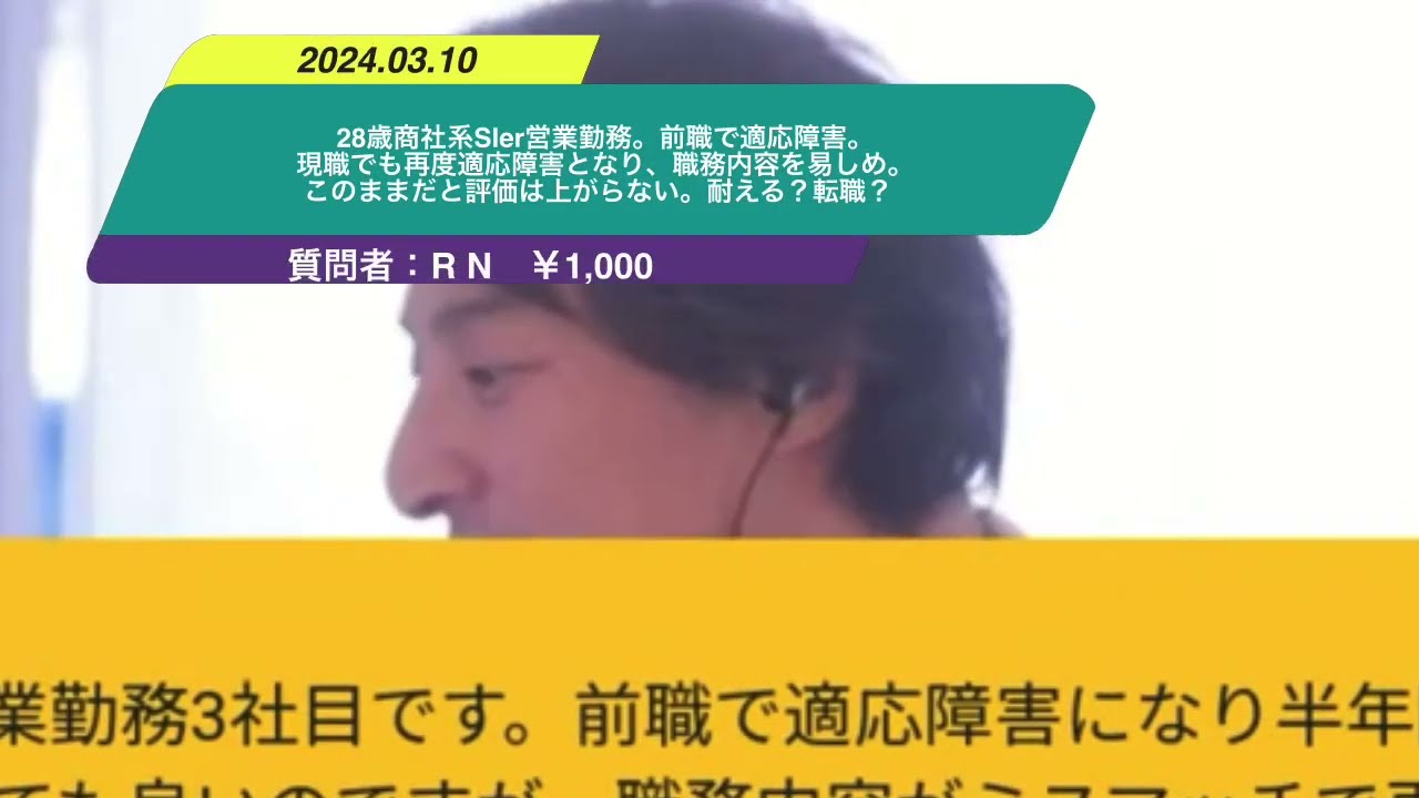 Kind: captionsLanguage: jaえ28歳照射系S営業勤務3者目ですえ前職で適用障害になり半年間給食ご退職そのご原職です原職は職場環境がとてもいいのですが職務内容がミスマッチで左用適用障害となり今職務内容優しくしてもらってます給料変わらず年収0万土量が毎日残業してる中自分は停止で上がっていますこのままだと評価変わらず消去回し違う職種に転職和を移動するか原職で頼るか意見を聞いただきたいです応原職で耐えるというのが可能なのであればは耐え続けた方がいいんじゃないかなと思いますけどね要はその原色で耐えてそこら辺のあの症状が出ないようになればじゃああは普通に働けますっていう状態だと思うのででなんかその天気なり武将移動することでその悪化したりとかで今のその割と福利が福利構成がきちんとしてる会社っていうのをやめてしまってその後給料下がってってなると余計不安も増えてしまうと思うのでなんでその耐えるという表現がどれぐらいきついのかわかんないですけどなんとかなるんだったらそこで頑張った方がいいんじゃないかと思いますけど
