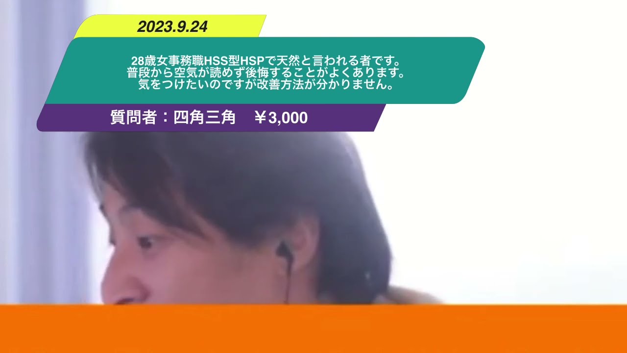 【ひろゆき】28歳女事務職HSS型HSPで天然と言われる者です。普段から空気が読めず後悔することがよくあります。気をつけたいのですが改善方法が分かりません。ー ひろゆき切り抜き 20230924