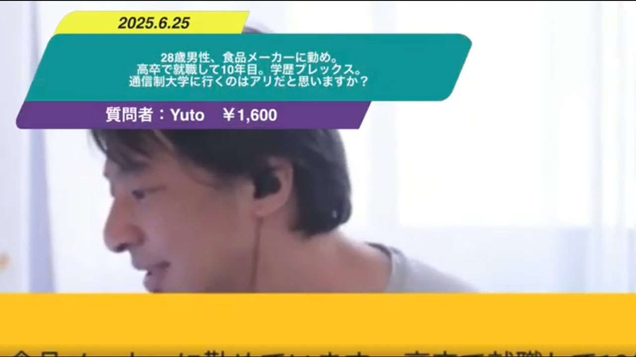 あの、コンプレックスをそれで消えるんだったら安いもんなんでなので別にあの、本質的には別に大卒にならなくてももう金儲けてから全然いいんじゃねえのって思うんですけど、ま、それですっきりするんだったらもう娯楽だと思うんですよ。