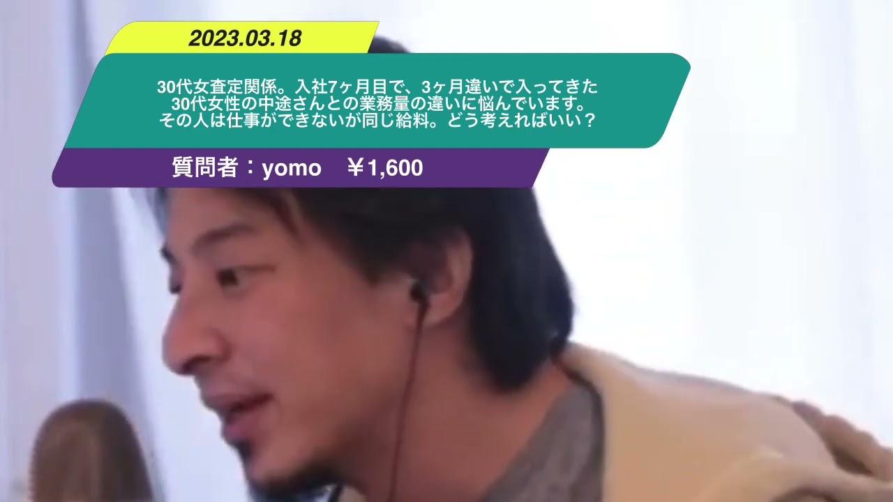 Kind: captionsLanguage: jaえ30代女査定関係ですえ入社7ヶ月目で3ヶ月違いで入ってきた30代女性の中途さんとの業務料の違いに悩んでいます彼女は教えてもらった業も覚えられないようで仕方がないよねという感じで任されず担当企業が私の半分です同じ企業なのに同じ給料なのにずるいなと思ってしまい気持ちがうまく整理できませんえどうやって考え方を変ればよいでしょうかえっと上司に言ってくださいも結局あの担当の量がその半分なのに給料同じっていうのは納得できないので給料上げてくださいサモなきゃやめますよっていうのを多分あの能力値高いんだと思うんですよね多分そのえっとその新しく入った人が無能というよりあなたが業務に慣れていて作業量が多いあその処理能力が高いてことだと思うのでなので自分やめたらこの会社回んないっすよねっていうのででそのじゃやめて欲しくなかったらもうちょっと給料上げてっていう交渉をした方がいいんじゃないかなと思いますけど