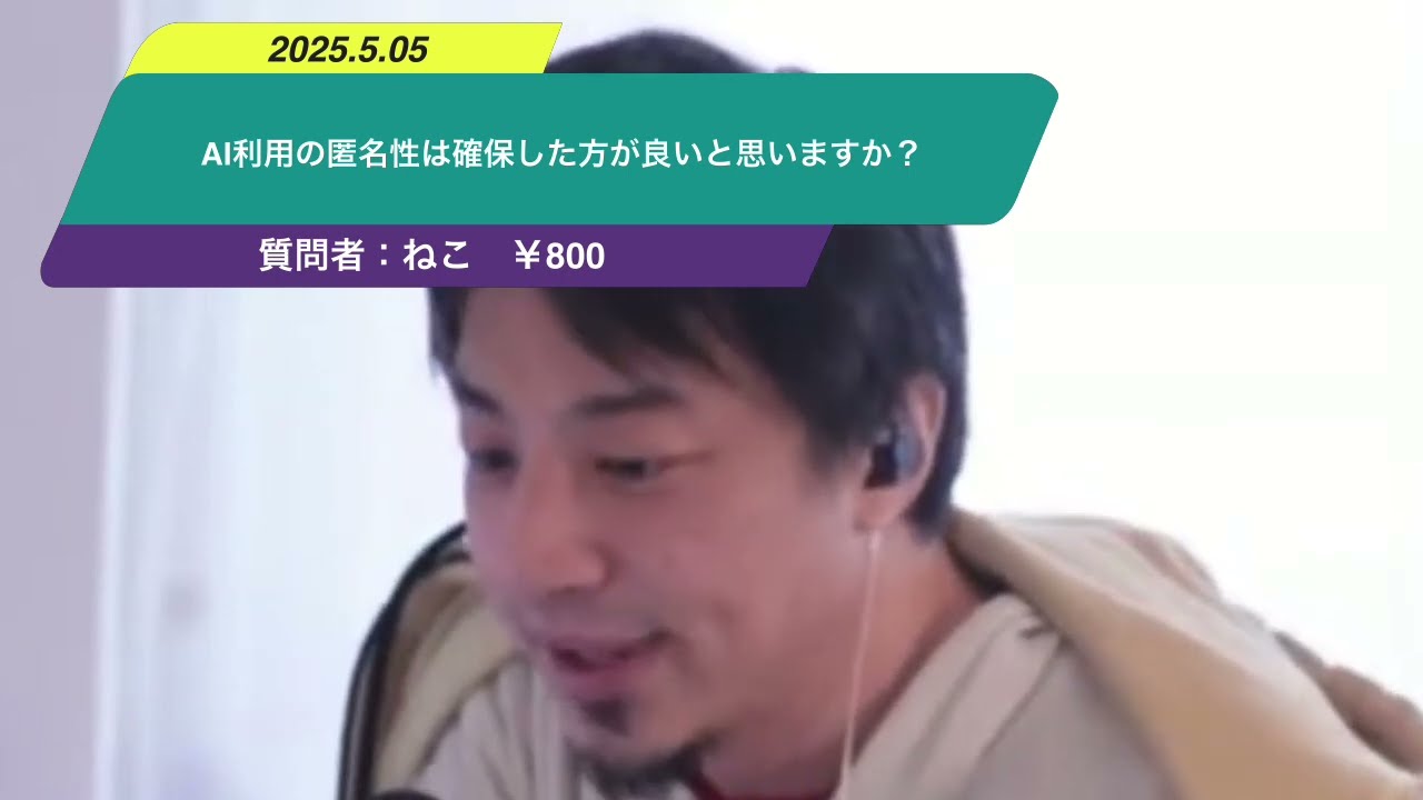 Kind: captionsLanguage: jaえ、AIが発達していく上で、悪用を防ぐために個人情報を結びつける流れが起きる可能性があると思うんですが、AI利用の特面さが良いと思いますか?個人的な一層、端末のマイナ難を結びつける未来があっても良いと思います。
