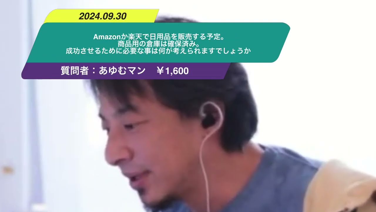【ひろゆき】Amazonか楽天で日用品を販売する予定。 商品用の倉庫は確保済み。 成功させるために必要な事は何が考えられますでしょうか。ー ひろゆき切り抜き 20240930