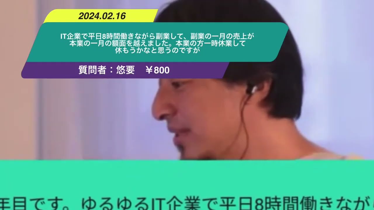 Kind: captionsLanguage: jaえ25歳社会人3年目ですゆIT企業で平日8時間働きながら副業して先月副業の1月の売上が本業の1月の学名を超えました一方で時間なすぎて結構生活が悲惨な状況のため本業の方を一時休業して休もかなと思うんでどう思いますか思いになりますがおきいただきたいですよろしくお願いしますあ全然いいんじゃないですかあのその接客副業が伸びてる状況だったらそれにかけてみるっていうのでであのIT企業で3年間社会地にできてるってことは割とあの相企業戻りたければいくらでも戻れると思うのでなのであの自分の副業に1回かけてみるっていうのはチャンスとしても面白いんじゃないかなと思いますけど