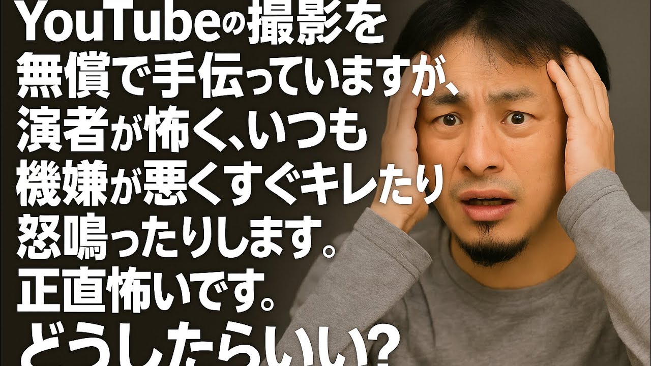 YouTubeの撮影を無償で手伝っていますが、演者が怖く、いつも機嫌が悪くすぐキレたり怒鳴ったりします。正直怖いです。どうしたらいいでしょうか?
