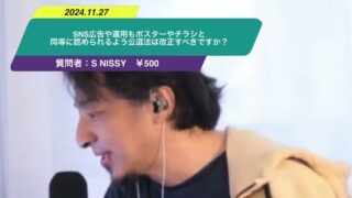 Uncategorized 【ひろゆき】SNS広告や運用もポスターやチラシと同等に認められるよう公選法は改正すべきですか?ー ひろゆき切り抜き 20241127
