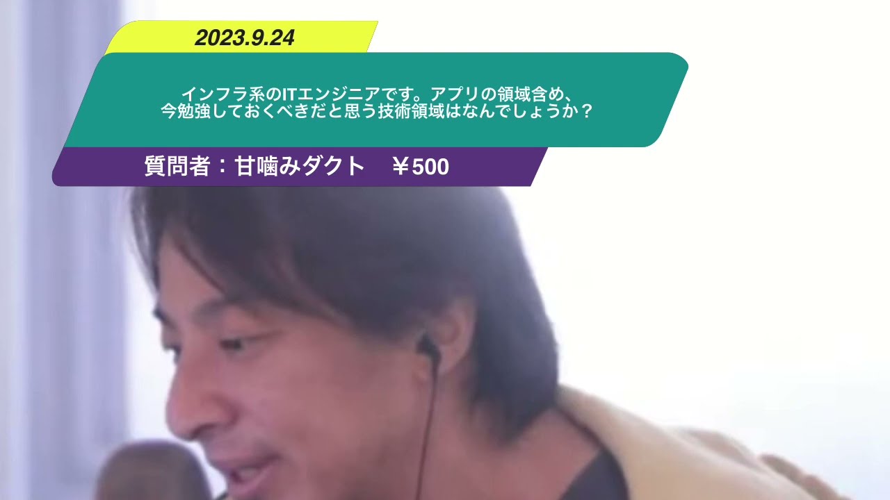 インフラ系のITエンジニアです。アプリの領域含め、ひろゆきさんが今勉強しておくべきだと思う技術領域はなんでしょうか?
