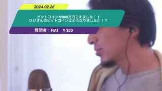 【動画の概要】質問者:RAI ¥320ビットコインが900万円こえました!!ひげさんのビットコインはどうなりましたか!?元動画:ロシアの敗北は無さそうな、、Guillaume Dursusを呑みながら 2024/02/28 W22 ひ...