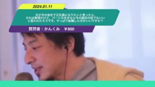 プログラミング・IT業界 【ひろゆき】30代後半RPAエンジニア。給与の振込間違いを問い合わせるとパワハラされる。勢いで辞める予定。金銭面は大丈夫、転職頑張るのでなんかアドバイス下さいー ひろゆき切り抜き 20231018
