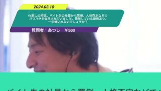 職場・人間関係 【ひろゆき】仕返しの相談。バイト先の社員から罵倒、人格否定などでパワハラを毎日されていました。罵倒している録音あり。一矢報いれないでしょうか?ー ひろゆき切り抜き 20240310
