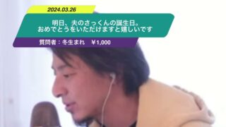 【動画の概要】質問者:冬生まれ ¥1,000ひろゆきさん、おばんです〜。明日、夫のさっくんの誕生日です!1日早いのですが、夜は焼き餃子でお祝いしました。ひろゆきさんから、おめでとうをいただけますと嬉しいです。年度末なのでお忙しいと思いますが...