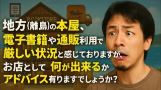 【動画の概要】質問者:zechi ¥1,000地方(離島)で本屋さんを営んでいます、電子書籍や通販利用で厳しい状況と感じておりますが、お店として何が出来るかアドバイス有りますでしょうか?時代の流れとして受け入れるしかないのでしょうか…元動画...