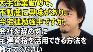 子育て・教育 【ひろゆき】大手企業勤めで、不動産に興味があり、今宅建勉強中ですが、会社を辞めずに宅建資格を活用できる方法を教えてくださいー ひろゆき切り抜き 20250804