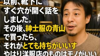 子育て・教育 【ひろゆき】以前、靴下にすぐ穴が開く話をしました。その後、紳士服の青山で買ったら、それがとても持ちがいいです。やはり洋服店のものはモノがいい?ー ひろゆき切り抜き 20250831