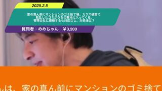 Uncategorized 【ひろゆき】家の真ん前にマンションのゴミ捨て場。カラス被害で散乱したゴミがうちの敷地に入ってくる。管理会社に連絡するも対応なし。対処法は?ー ひろゆき切り抜き 20250205