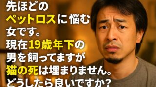 Uncategorized 【ひろゆき】先ほどのペットロスに悩む女です。現在19歳年下の男を飼ってますが猫の死は埋まりません。どうしたら良いですか?ー ひろゆき切り抜き 20250806
