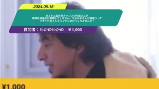 【動画の概要】質問者:5330 gonchan ¥200最近50肩のようで痛いんですが、和らぐ方法知らないですか?元動画:ふりかけが売れると治安が悪くなる。東京クラフト。2024/12/27 V16 ひろゆきさんの動画で、寄せられた質...