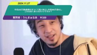 Uncategorized 【ひろゆき】年収250万週6勤務がきつくて個人独立し年収800万週4にできました。これを長く保つ方がいいですか?ー ひろゆき切り抜き 20241127