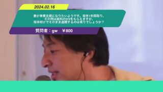 Uncategorized 【ひろゆき】妻が専業主婦になりたいようです。育休1年間取り、その間は給料の2/3をもらえますが、育休明けでそのまま退職するのは有りでしょうか?ー ひろゆき切り抜き 20240216